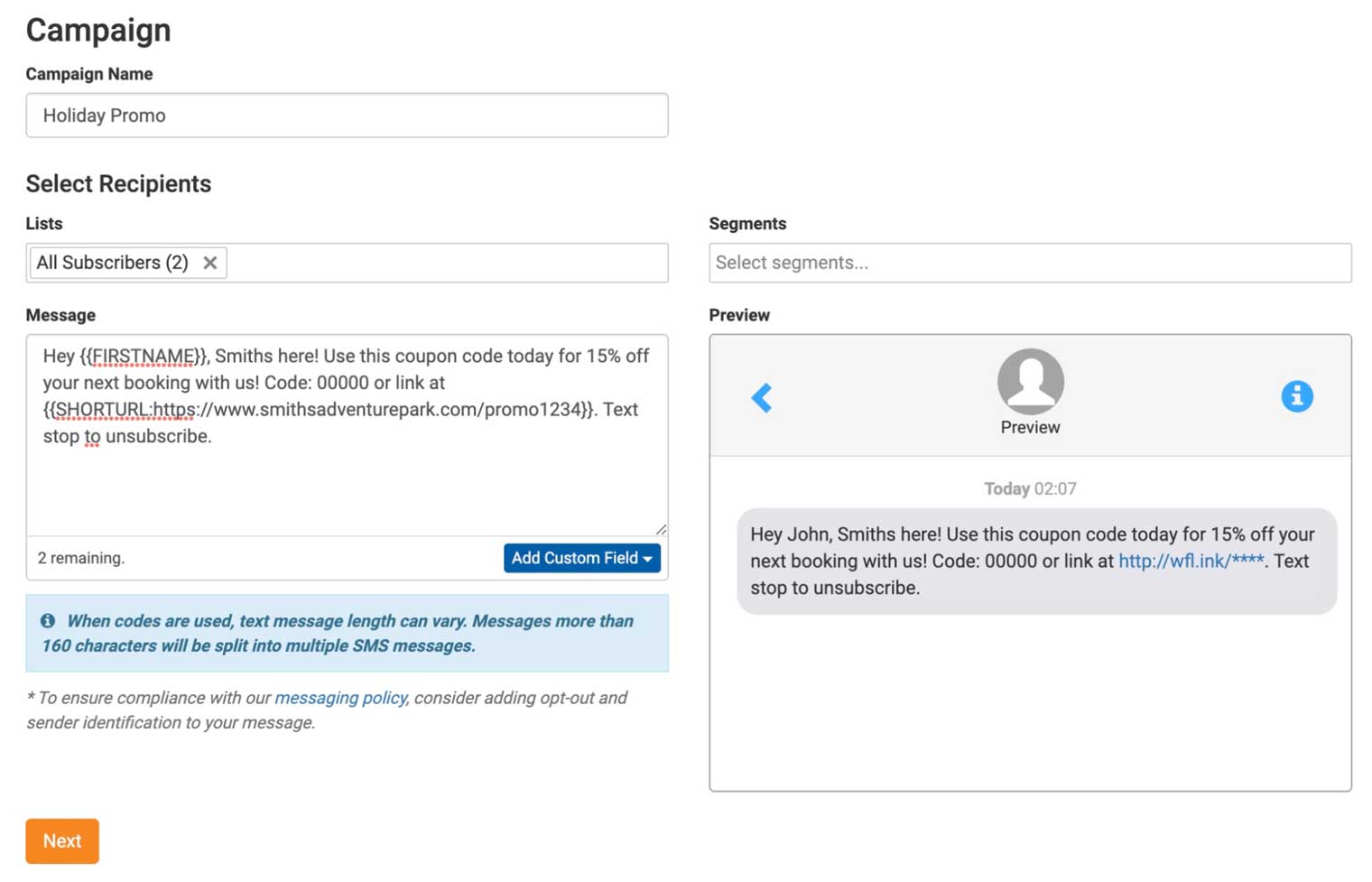 Once you have created a segment, you can use it in sms text messaging campaigns.